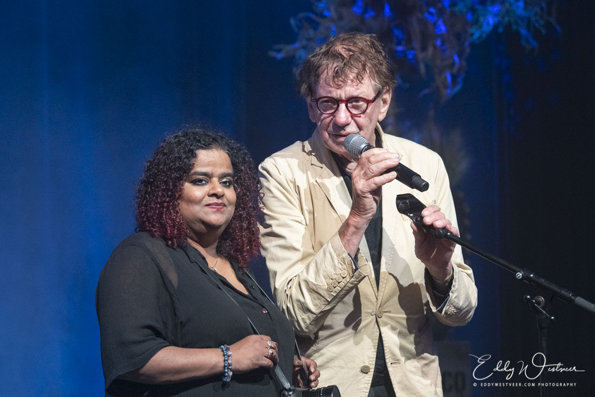 Het fotoboek werd onlangs gepresenteerd op een mooie zondagmiddag hartje Amsterdam in het Tobacco Theater. Op zondag 15 mei was een greep uit het boek te zien. Er waren hapjes en drankjes en op het podium een boel vertier. Zo stonden er dansacts van Lucia’s Martha’s, dragqueen Miss April èn burlesque artiest Natsumi Scarlett. Maar natuurlijk was er ook live muziek met jazz en improvisatie. Die improvisatie was er zelfs al bij de samenstelling van de bandjes. Zo maakte drummer Joost Lijbaart zijn entree bij Hans Dulfer en Jerome Hol tijdens een korte set. Dulfer, die mopperen tot vermaak probeerde te maken, mocht bovendien het eerste boek uitreiken aan de fotografe. En hij grapte dat hij ontzettende hekel had aan fotografen. En illustreerde dat met een fraaie anekdote over liften in de jaren ’60 waar hij een lift kreeg van een onbetrouwbare fotograaf van een gereformeerd blaadje.