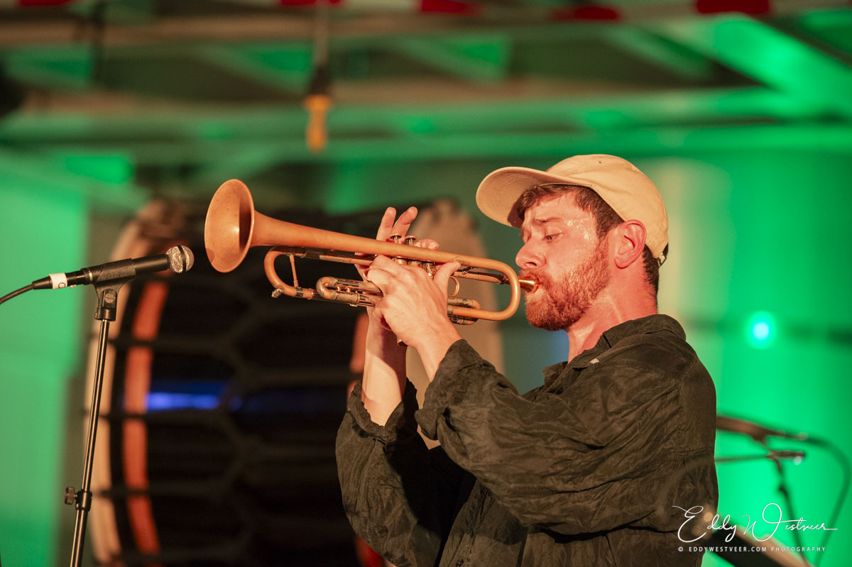 Wanneer eventjes na half tien alle bezoekers binnen waren werden ze verwelkomd door curator van het festival Raluca Baicu. Zij verzocht de aanwezigen om voor de ouverture van deze éénmalige muzikale performance zich naar de andere hal te bewegen. Daar stond de Japanse Tsubasa Hori met verfijnde klanken de omgeving te zuiveren van slechte geesten. Van deze geluiden wordt wel gezegd dat ze alfa-hersengolven ontwikkelen die een gevoel van comfort oproepen. De bedenker van dit alles, de Vlaamse multi-instrumentalist Joachim Badenhorst voegde zich samen met de Schotse trompettist Alistair Payne binnen de cirkel van muisstille bezoekers. Subtiele zwevende tonen verkennen het gebouw en galmen door de ruimte. De Ierse gitarist Simon Jermyn kon je in de verte op zijn balkon zien zitten en zijn klanken botsten halverwege.