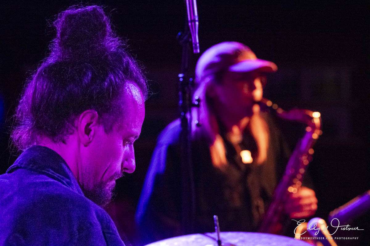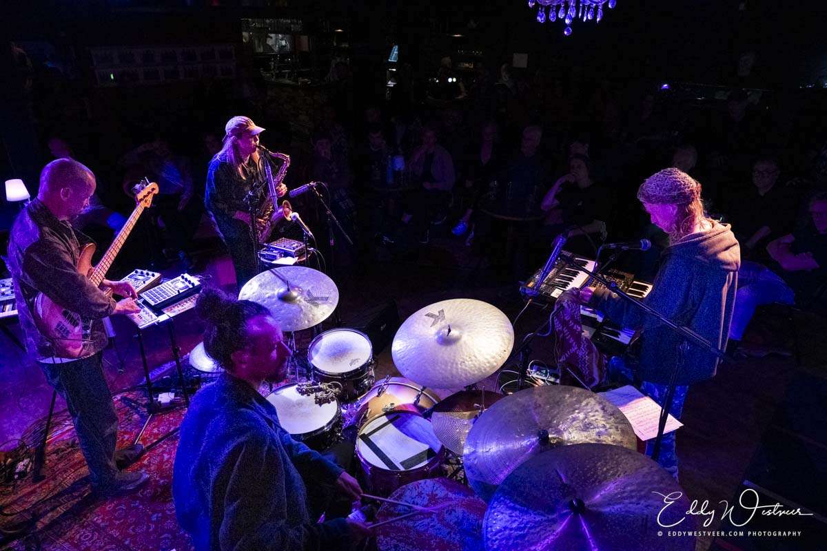 Onorthodox is ook de opstelling van deze avond in Paradox, Tilburg. Geen podium op afstand, maar een speelvloer midden in de zaal, met het publiek rondom en zelfs tussen de musici. De eerste tonen zetten meteen de toon: complexe, gelaagde ritmes die als een elektrische lading door de ruimte schieten. Het geluidsvolume was niet helemaal voor kinderoortjes en, of dat nou aan de opstelling lag of met de afstelling te maken had, de transparantie van het geluid was niet optimaal.