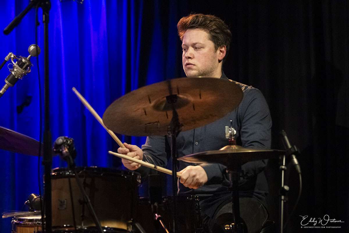 De druk lijkt hem niet te verlammen maar juist vleugels te geven. Met vaste hand leidt hij zijn trio – Toon Rumen op contrabas en Jens Meijer op drums – door een rijk programma. In zijn compositie No I Haven’t, een speels antwoord op de jazzstandard Have You Met Miss Jones, toont hij zijn flair voor humor en vakmanschap.