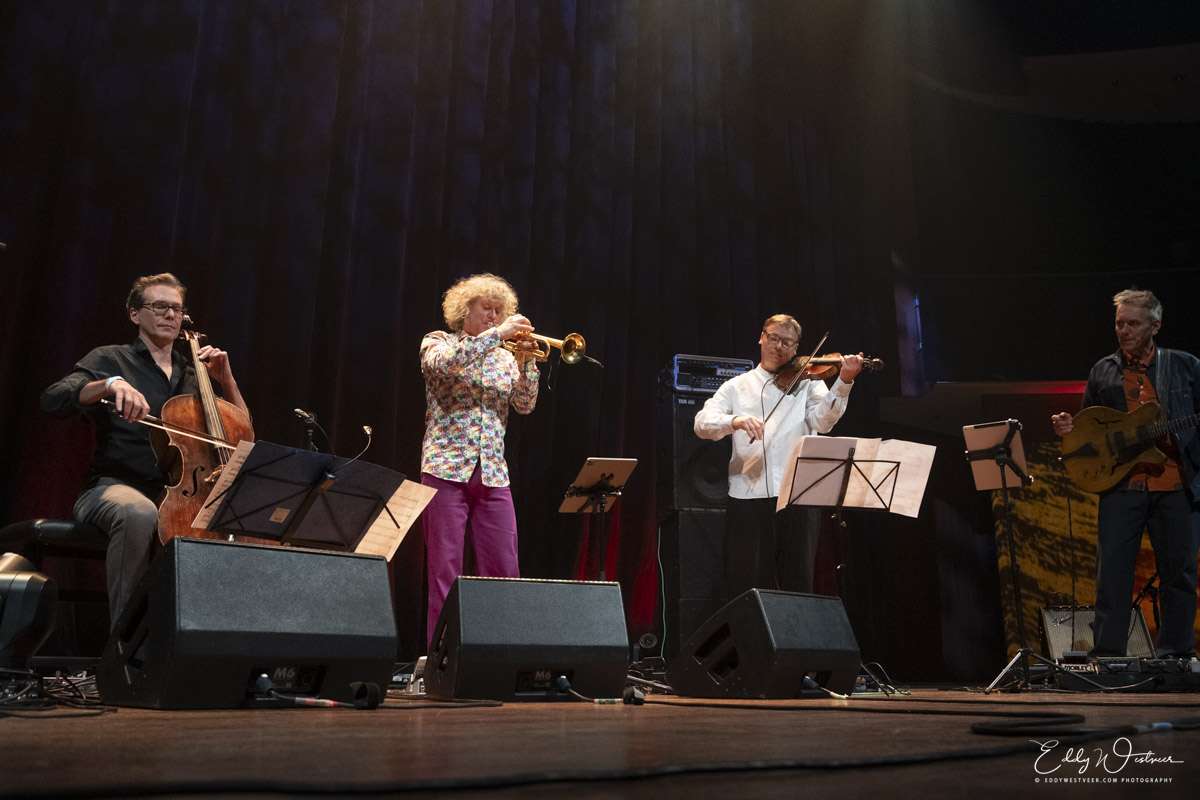 Met composities als Zonsopgang en Joie de Vivre schildert hij een muzikaal palet vol optimisme en licht. De bezetting is schitterend gekozen: cellist Jörg Brinkmann, violist Jasper le Clercq, slagwerker Udo Demandt en gitarist Mark Tuinstra, die met zijn scherpe tegenstem het gesprek met Vloeimans’ trompet aangaat. Tijdens de première van Picobello fonkelt oranje als een muzikale metafoor voor levenslust.