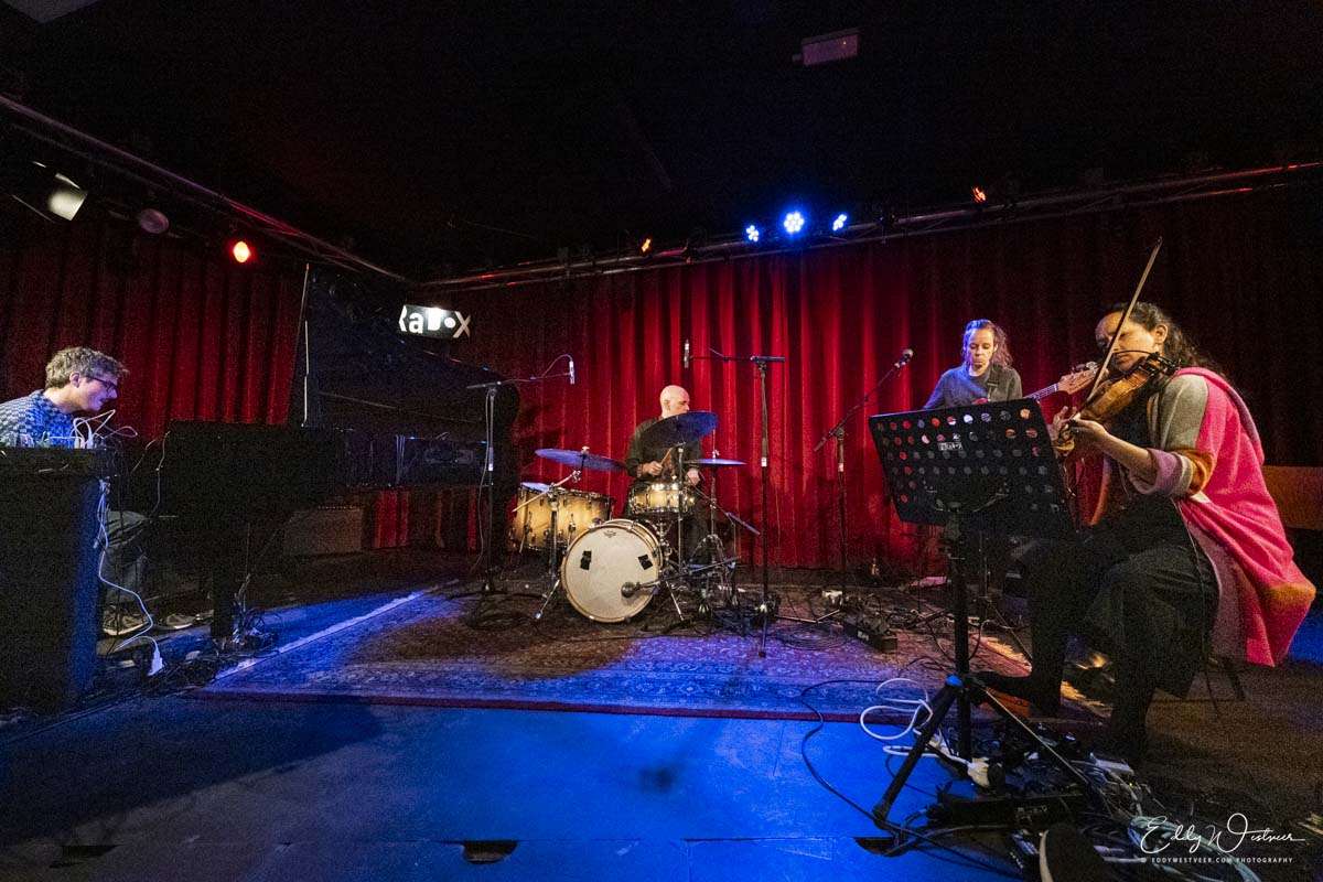 Voor deze tournee brengt Galvin zijn eigen kwartet mee. Hijzelf op piano, duimpiano en synths. Mandhira de Saram, terug van weggeweest, omringd door een arsenaal aan pedalen dat haar viool een tweede, elektronische adem geeft. Ruth Goller, met haar roemruchte staat van dienst, bespeelt basgitaar en elektronica en zingt met een stem die tegelijk intiem en ontheemd klinkt. Achter de drums zit Sebastian Rochford — bekend van onder meer Polar Bear en samenwerkingen met David Byrne, Brian Eno en Patti Smith — die ritme niet slaat maar beeldhouwt.